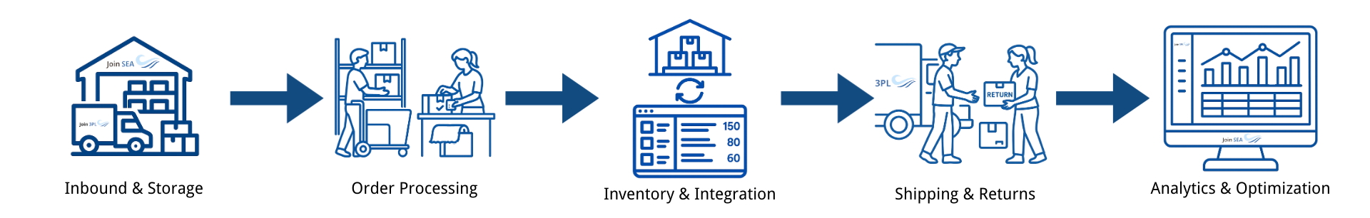 At Join3PL, we deliver end-to-end fulfillment solutions for both B2B and B2C, covering warehousing, inventory management, order processing, and last-mile delivery. Backed by advanced WMS and efficient processes, our operations ensure accuracy, speed, and scalability across Malaysia and Singapore, enabling businesses to serve customers with consistency and confidence.